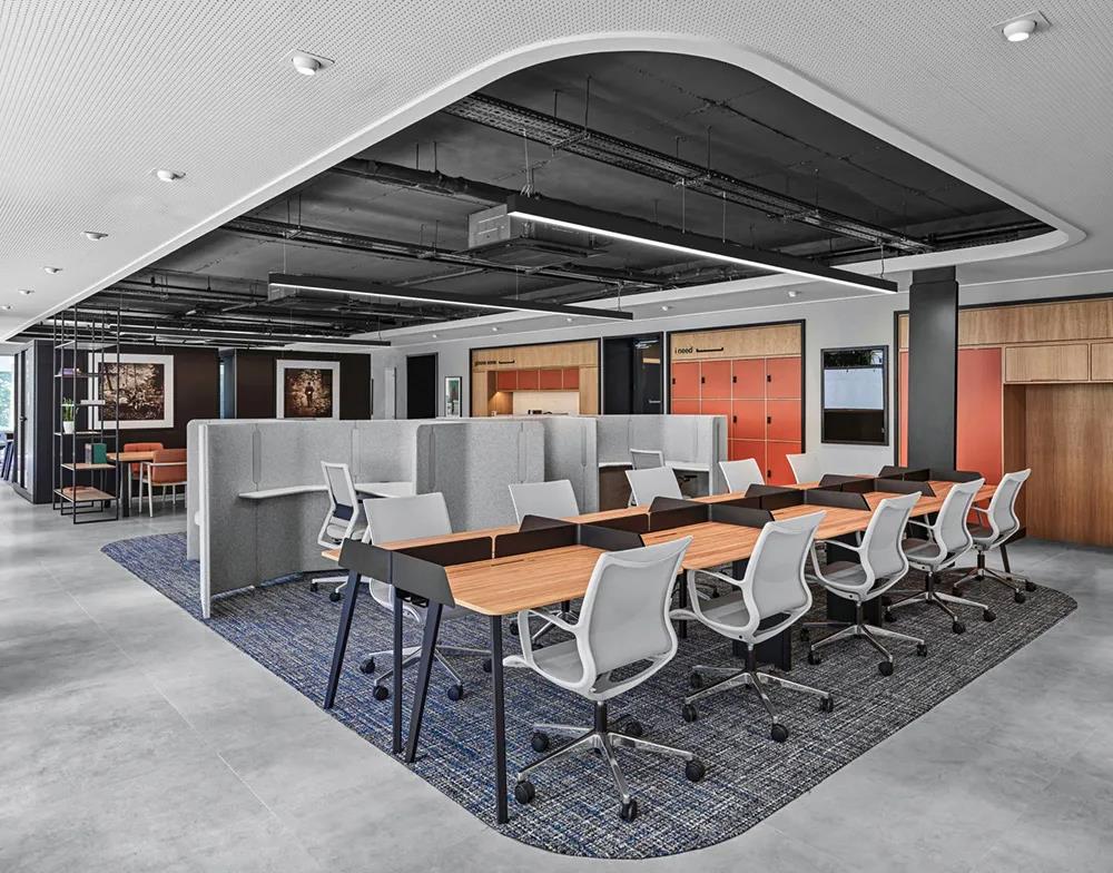 每個企業都有自己的產業特點,和現代潮流相結合,創造有自己獨有特色的辦公家具環境、理念和模式。瓷磚或大理石地面,選擇鋼木辦公家具會增加室內冰冷的氣氛,建議選用板式辦公家具并在局部鋪地毯。