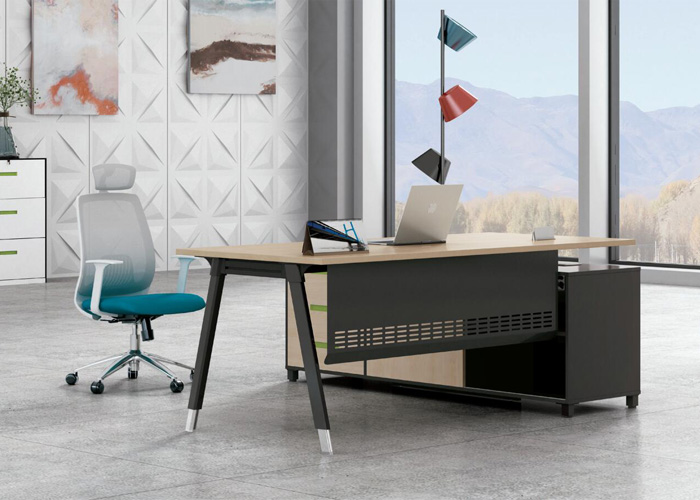 辦公家具班臺鋼腳采用直角和直行臺面相結(jié)合,達到材料與外觀設(shè)計的緊密結(jié)合,不同規(guī)格的側(cè)臺設(shè)計簡單,使用方便。臺面可配合不同規(guī)格的側(cè)臺,可根據(jù)辦公空間的不同需求進行組合搭配,讓您的空間更靈活多變。