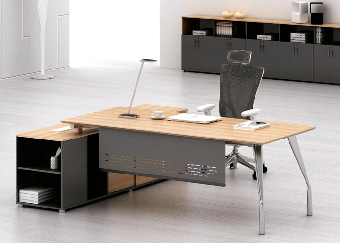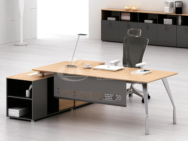 辦公家具班臺鋼腳采用直角和直行臺面相結合,達到材料與外觀設計的緊密結合,不同規格的側臺設計簡單,使用方便。臺面可配合不同規格的側臺,可根據辦公空間的不同需求進行組合搭配,讓您的空間更靈活多變。