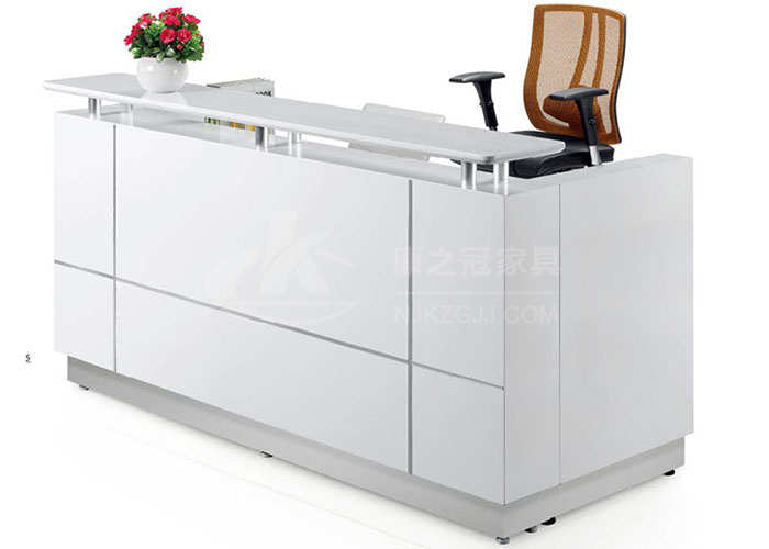 康之冠接待前臺的特點:選用進口的PVC封邊條,搭配環保熱熔膠,桌面邊緣精致密封,結實耐用承重力強,表面光滑不易變形,抗菌耐潮,使用壽命更長久!