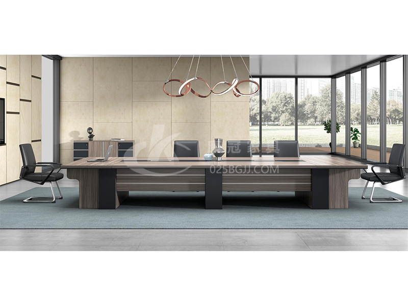 板式會議桌采用與主管桌相同的設計元素,呈現辦公空間整體性;模塊式桌面咨詢平臺,獨設的電路檢修門,滿足現代會議設備需求。