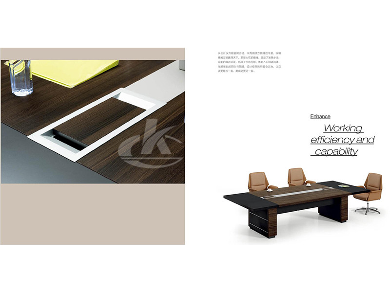 板式會議桌采用與主管桌相同的設計元素,呈現辦公空間整體性;模塊式桌面咨詢平臺,獨設的電路檢修門,滿足現代會議設備需求。